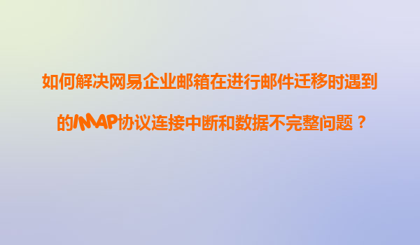 2025-11-09如何解決網(wǎng)易企業(yè)郵箱郵件遷移中的IMAP連接中斷與數(shù)據(jù)不完整問題 一、問題背景 在企業(yè)郵箱遷移過程中,使用IMAP協(xié)議時可能遇到兩類典型問題:一是連接頻繁中斷導(dǎo)致遷移失敗,二是遷移后數(shù)據(jù)不完整(如缺...