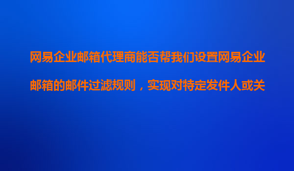 2025-11-09網(wǎng)易企業(yè)郵箱代理商如何幫您高效設(shè)置郵件過濾規(guī)則? 一、網(wǎng)易企業(yè)郵箱的郵件過濾功能概述 網(wǎng)易企業(yè)郵箱作為國內(nèi)領(lǐng)先的企業(yè)級通訊解決方案,提供了強大的郵件過濾系統(tǒng)。通過該功能,企業(yè)可以實現(xiàn)對特定發(fā)件人、關(guān)鍵...