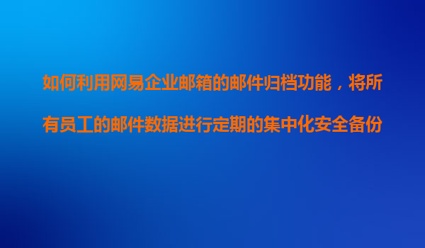 2025-11-09如何利用網(wǎng)易企業(yè)郵箱的郵件歸檔功能實現(xiàn)集中化安全備份 一、郵件歸檔功能的行業(yè)需求背景 隨著企業(yè)數(shù)字化進程加速,電子郵件作為核心辦公載體,其數(shù)據(jù)資產(chǎn)價值日益凸顯。根據(jù)IDC調(diào)研報告,83%的企業(yè)將郵件歸檔列...