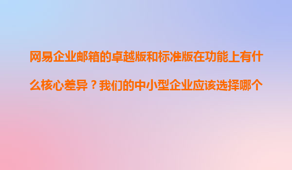 2025-11-09網(wǎng)易企業(yè)郵箱卓越版與標(biāo)準(zhǔn)版功能對比及中小企業(yè)選型指南 網(wǎng)易企業(yè)郵箱的核心優(yōu)勢 網(wǎng)易企業(yè)郵箱作為國內(nèi)頭部企業(yè)級郵件服務(wù)商,以其穩(wěn)定安全的服務(wù)、智能高效的辦公協(xié)同功能深受企業(yè)信賴。其核心優(yōu)勢體現(xiàn)在...