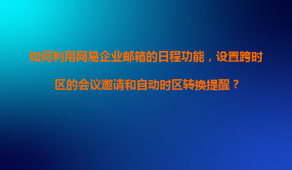 2025-11-09如何利用網(wǎng)易企業(yè)郵箱的日程功能高效管理跨時區(qū)會議 一、網(wǎng)易企業(yè)郵箱日程功能的優(yōu)勢 網(wǎng)易企業(yè)郵箱作為國內(nèi)領(lǐng)先的企業(yè)級郵件服務(wù),其日程管理功能在跨時區(qū)協(xié)作場景中具有顯著優(yōu)勢: ...