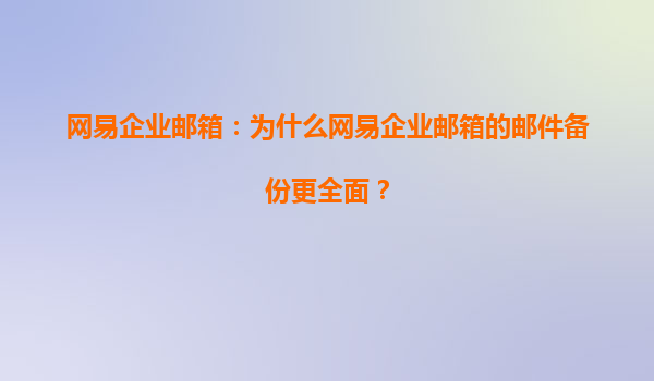 2025-08-04網(wǎng)易企業(yè)郵箱:為什么網(wǎng)易企業(yè)郵箱的郵件備份更全面? 在當(dāng)今數(shù)字化辦公環(huán)境中,企業(yè)郵箱不僅是溝通工具,更是業(yè)務(wù)數(shù)據(jù)的重要載體。郵件丟失或管理不善可能導(dǎo)致信息斷層、法律風(fēng)險(xiǎn)甚至商業(yè)損失。網(wǎng)易企業(yè)郵箱憑...
