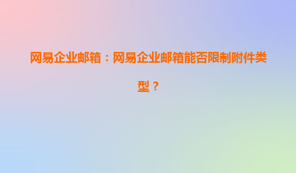 2025-08-04網(wǎng)易企業(yè)郵箱:網(wǎng)易企業(yè)郵箱能否限制附件類型? 一、網(wǎng)易企業(yè)郵箱的附件管理功能 網(wǎng)易企業(yè)郵箱作為國(guó)內(nèi)領(lǐng)先的企業(yè)郵箱服務(wù)提供商,提供了豐富的功能以滿足企業(yè)的多樣化需求。其中,附件管理是企業(yè)郵箱使用...