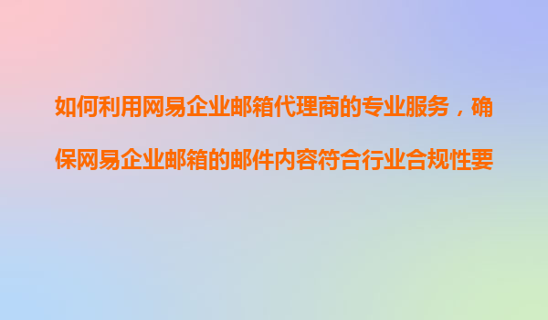 2025-11-08如何利用網(wǎng)易企業(yè)郵箱代理商的專業(yè)服務(wù),確保網(wǎng)易企業(yè)郵箱的郵件內(nèi)容符合行業(yè)合規(guī)性要求和內(nèi)部審核制度? 在數(shù)字化轉(zhuǎn)型的浪潮下,企業(yè)溝通的高效性與安全性日益受到重視。網(wǎng)易企業(yè)郵箱憑借其強大的功能和服...