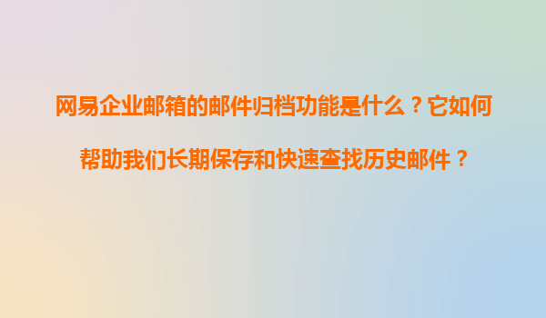 2025-11-08網(wǎng)易企業(yè)郵箱的郵件歸檔功能是什么?它如何幫助我們長期保存和快速查找歷史郵件? 一、網(wǎng)易企業(yè)郵箱郵件歸檔功能概述 網(wǎng)易企業(yè)郵箱的郵件歸檔功能是一項專為企業(yè)用戶設(shè)計的智能化郵件管理...