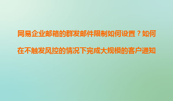 4008-020-360 網(wǎng)易企業(yè)郵箱的群發(fā)郵件限制設(shè)置及大規(guī)??蛻敉ㄖ呗? 一、網(wǎng)易企業(yè)郵箱群發(fā)郵件的限制規(guī)則解析 網(wǎng)易企業(yè)郵箱為保障郵件系統(tǒng)的穩(wěn)定性和減少垃圾郵件風險,對群發(fā)郵件設(shè)有明確限制: 單次發(fā)送上限:...