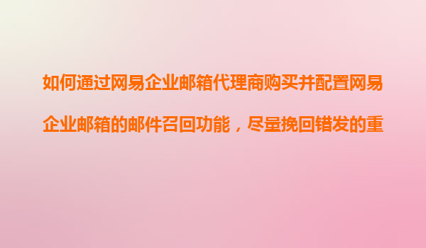 2025-11-07如何通過網(wǎng)易企業(yè)郵箱代理商購買并配置郵件召回功能,挽回錯發(fā)郵件 一、網(wǎng)易企業(yè)郵箱的核心優(yōu)勢 作為國內(nèi)領(lǐng)先的企業(yè)級郵箱服務(wù)商,網(wǎng)易企業(yè)郵箱憑借以下優(yōu)勢成為眾多企...