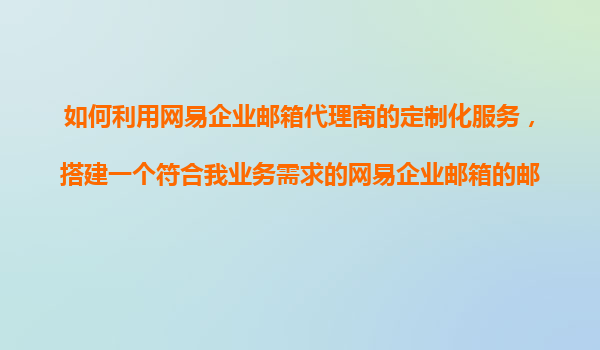 2025-11-08如何利用網(wǎng)易企業(yè)郵箱代理商的定制化服務(wù)搭建郵件分級管理與權(quán)限控制架構(gòu) 一、網(wǎng)易企業(yè)郵箱的核心優(yōu)勢與代理商價值 網(wǎng)易企業(yè)郵箱作為國內(nèi)領(lǐng)先的企業(yè)級郵件服務(wù),提供高穩(wěn)定性(99.9%可用性)、反...