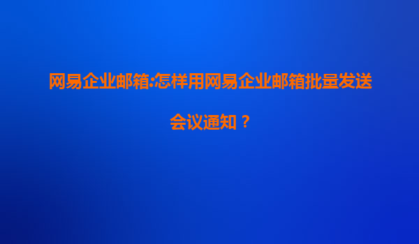 2025-07-20網(wǎng)易企業(yè)郵箱:如何高效批量發(fā)送會(huì)議通知 一、批量發(fā)送會(huì)議通知的必要性 在日常辦公中,會(huì)議通知是企業(yè)溝通的重要環(huán)節(jié)。傳統(tǒng)方式手動(dòng)逐一發(fā)送郵件效率低下且易出錯(cuò),而網(wǎng)易企業(yè)郵箱的批量發(fā)送功能可幫助您...