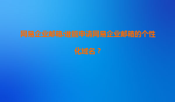 2025-07-20網(wǎng)易企業(yè)郵箱個(gè)性化域名申請(qǐng)指南 在當(dāng)今數(shù)字化時(shí)代,企業(yè)郵箱不僅是內(nèi)部溝通的重要工具,更是企業(yè)形象和專業(yè)性的體現(xiàn)。網(wǎng)易企業(yè)郵箱作為國內(nèi)領(lǐng)先的企業(yè)郵箱服務(wù)商,憑借其穩(wěn)定、安全、高效的特性深受企業(yè)用戶青睞。...
