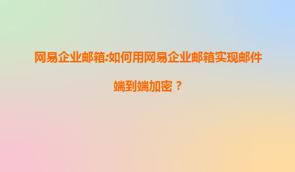 2025-07-19網(wǎng)易企業(yè)郵箱:如何實現(xiàn)郵件端到端加密? 隨著信息安全意識的提升,企業(yè)對郵件的隱私保護需求日益增長。端到端加密(End-to-EndEncryption,E2EE)技術能夠確保郵件內(nèi)容在傳輸和存儲過程中僅由發(fā)件人和收件人...