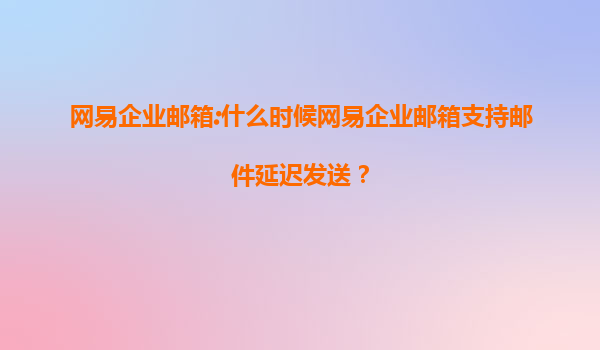 4008-020-360 網(wǎng)易企業(yè)郵箱:什么時候網(wǎng)易企業(yè)郵箱支持郵件延遲發(fā)送? 在當今快節(jié)奏的商業(yè)環(huán)境中,高效、便捷的郵件溝通是企業(yè)運營中不可或缺的一部分。作為國內(nèi)領先的企業(yè)郵箱服務提供商,網(wǎng)易企業(yè)郵...