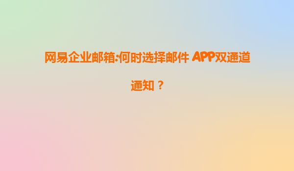2025-07-16網(wǎng)易企業(yè)郵箱:何時選擇郵件+APP雙通道通知? 一、雙通道通知的核心價值 在高效協(xié)同的現(xiàn)代辦公環(huán)境中,信息觸達的及時性與可靠性直接影響企業(yè)運營效率。網(wǎng)易企...