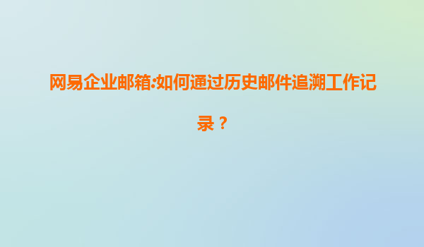 2025-07-17網(wǎng)易企業(yè)郵箱:通過歷史郵件高效追溯工作記錄 為什么需要追溯歷史郵件? 在日常工作中,員工經(jīng)常需要查找過去的郵件記錄來完成某項任務,或是確認某個項目的細節(jié)。特別是在處理重要文件、...