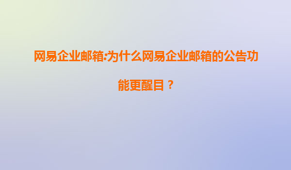 2025-07-16網(wǎng)易企業(yè)郵箱:如何設置全員強制閱讀通知 一、網(wǎng)易企業(yè)郵箱的優(yōu)勢 網(wǎng)易企業(yè)郵箱作為國內領先的企業(yè)郵箱服務提供商,憑借其穩(wěn)定、安全、高效的特點,深受企業(yè)用戶的信賴。以下是網(wǎng)易企業(yè)郵箱的幾大核心...