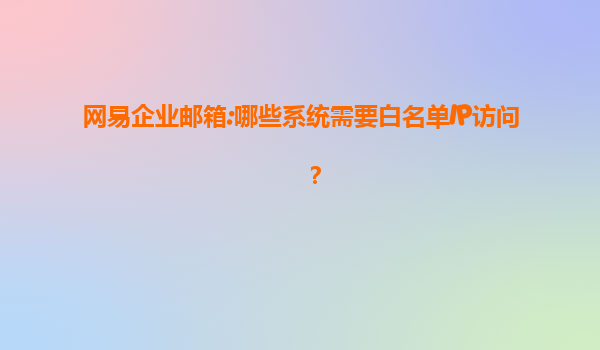 2025-07-17網(wǎng)易企業(yè)郵箱:哪些系統(tǒng)需要白名單IP訪問? 一、什么是白名單IP訪問? 白名單IP訪問是一種網(wǎng)絡安全機制,僅允許預先授權的IP地址訪問特定系統(tǒng)或服務。在企業(yè)郵箱場景中,通過設置白名單I...