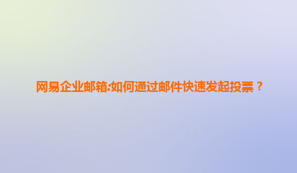 2025-07-14網(wǎng)易企業(yè)郵箱:如何通過郵件快速發(fā)起投票? 在現(xiàn)代企業(yè)辦公場景中,高效的溝通與決策至關(guān)重要。網(wǎng)易企業(yè)郵箱憑借其強大的功能,為用戶提供了通過郵件快速發(fā)起投票的便捷方式,顯著提升了團(tuán)隊協(xié)作效率。本文...
