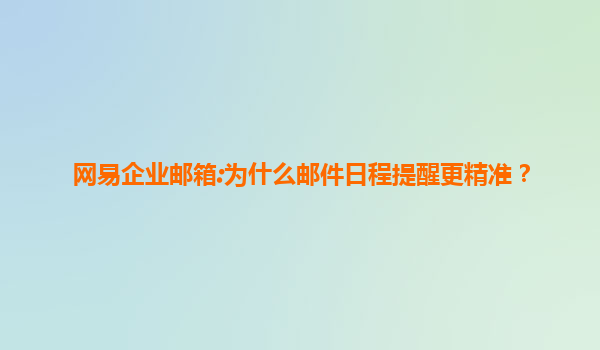 2025-07-14網(wǎng)易企業(yè)郵箱:為什么郵件日程提醒更精準(zhǔn)? 一、精準(zhǔn)日程管理的核心意義 在快節(jié)奏的商務(wù)辦公中,高效的日程管理直接影響團(tuán)隊協(xié)同效率。傳統(tǒng)的郵件系統(tǒng)往往僅提供基礎(chǔ)的定時發(fā)送功能,而...