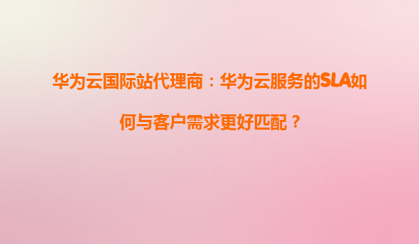 2026-01-09華為云國際站代理商:華為云服務(wù)的SLA如何與客戶需求更好匹配? 引言 在全球云計算市場競爭日益激烈的背景下,華為云憑借其技術(shù)實力和全球化布局,已成為企業(yè)數(shù)字化轉(zhuǎn)型的重要合作伙伴。作為華為云國際站代...