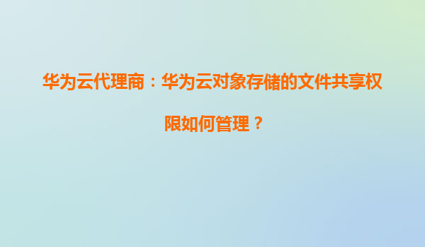 2026-01-09華為云代理商:華為云對(duì)象存儲(chǔ)的文件共享權(quán)限如何管理? 一、華為云對(duì)象存儲(chǔ)(OBS)概述 華為云對(duì)象存儲(chǔ)服務(wù)(ObjectStorageService,OBS)是一種可擴(kuò)展、高可靠、低成本的云存儲(chǔ)服務(wù),適用于海量數(shù)據(jù)存儲(chǔ)...