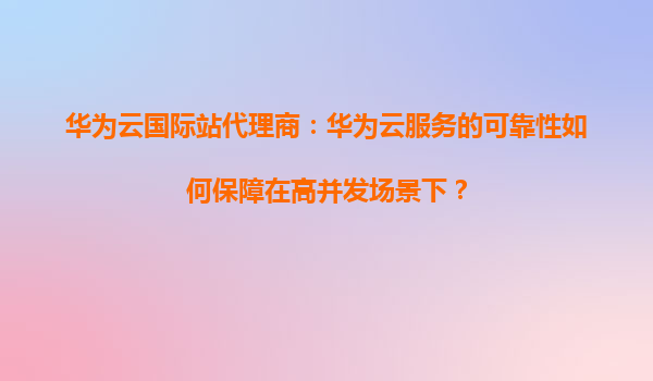 2026-01-09華為云國(guó)際站代理商:華為云服務(wù)的可靠性如何保障在高并發(fā)場(chǎng)景下? 引言 在數(shù)字化時(shí)代,企業(yè)業(yè)務(wù)規(guī)模的快速擴(kuò)張對(duì)云計(jì)算服務(wù)的可靠性和性能提出了更高要求,尤其是在高...
