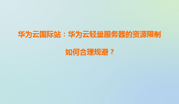 2026-01-09華為云國際站:華為云輕量服務(wù)器的資源限制如何合理規(guī)避? 一、華為云輕量服務(wù)器的核心優(yōu)勢 在探討如何規(guī)避資源限制之前,首先需要了解華為云輕量服務(wù)器的獨特優(yōu)勢,這些優(yōu)勢為用戶提供了更多靈活性和優(yōu)化空...