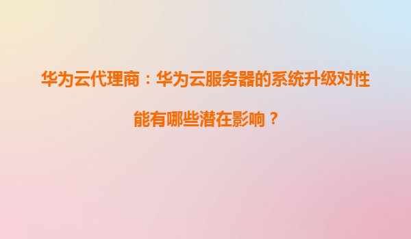 2026-01-09華為云代理商:華為云服務(wù)器的系統(tǒng)升級對性能有哪些潛在影響? 引言 在云計算時代,服務(wù)器系統(tǒng)的穩(wěn)定性和性能是企業(yè)業(yè)務(wù)連續(xù)性的關(guān)鍵保障。作為國內(nèi)領(lǐng)先的云服務(wù)提供商,華為云通過持續(xù)的系統(tǒng)升級優(yōu)化,不斷...