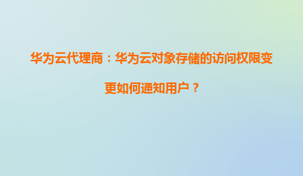 2026-01-09華為云代理商:華為云對象存儲的訪問權(quán)限變更如何通知用戶? 引言:權(quán)限管理在對象存儲中的重要性 在云計算時代,數(shù)據(jù)安全是企業(yè)核心關(guān)注點之一。華為云對象存儲(OBS)...