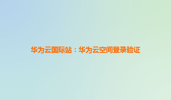 2025-12-22華為云國(guó)際站:華為云空間登錄驗(yàn)證 一、華為云空間登錄驗(yàn)證概述 華為云國(guó)際站(HUAWEICLOUDInternational)為全球用戶(hù)提供安全、高效的云服務(wù)。其中,華為云空間(HUAWEICloudSpace...