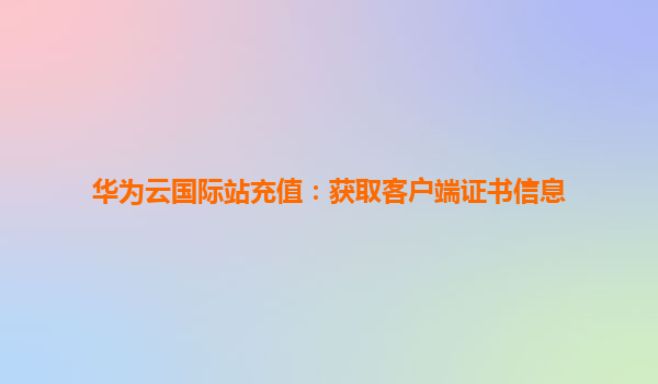 2025-12-18華為云國際站充值:獲取客戶端證書信息全攻略 一、什么是華為云客戶端證書? 客戶端證書是華為云為用戶提供的一種安全認證方式,主要用于驗證用戶身份,確保數(shù)據(jù)傳輸?shù)陌踩浴.?dāng)您通過華為云國際站進...