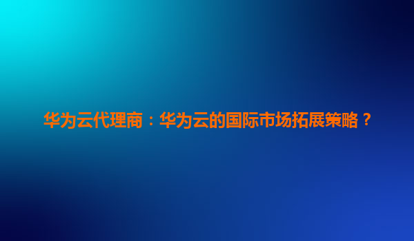 2026-01-07華為云代理商:華為云的國際市場拓展策略 引言 隨著全球數(shù)字化轉(zhuǎn)型的加速,云計算成為企業(yè)IT基礎(chǔ)設(shè)施的核心。作為中國領(lǐng)先的云服務(wù)提供商,華為云憑借其技術(shù)實...