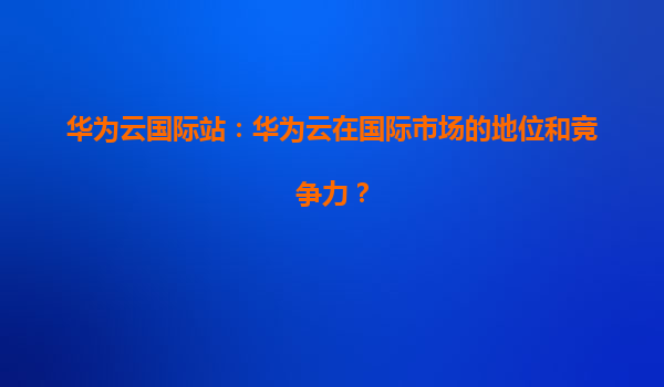 2026-01-07華為云國際站:華為云在國際市場的地位和競爭力 引言:全球化浪潮下的華為云 隨著數(shù)字化轉(zhuǎn)型加速,云計算成為全球企業(yè)IT基礎(chǔ)設(shè)施的核心。華為云作為中國領(lǐng)先的云服務(wù)提...