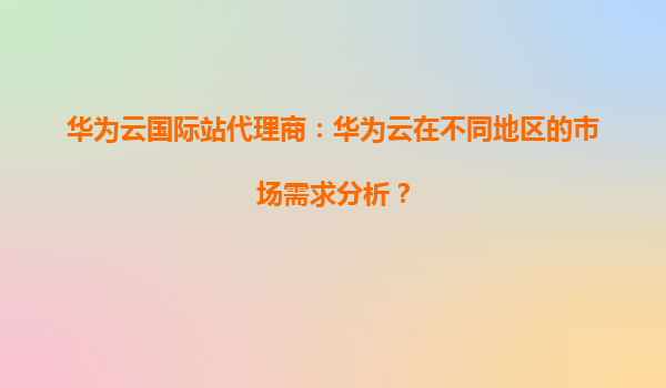 2026-01-07華為云國際站代理商:華為云在不同地區(qū)的市場需求分析 引言 隨著全球云計算市場的快速發(fā)展,華為云作為中國領(lǐng)先的云服務(wù)提供商,憑借其技術(shù)優(yōu)勢和全球化布局,逐漸在國際市場嶄露頭角。本文將從華為云的優(yōu)勢出...