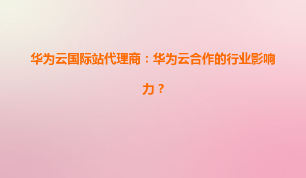 2026-01-07華為云國際站代理商:華為云合作的行業(yè)影響力 引言 在全球數(shù)字化轉(zhuǎn)型的浪潮中,云計算作為核心技術(shù)之一,正在深刻改變各行各業(yè)的運營模式。華為云作為全球領(lǐng)先的云服務(wù)...