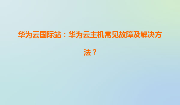 2026-01-07華為云國(guó)際站:華為云主機(jī)常見(jiàn)故障及解決方法 引言 隨著云計(jì)算技術(shù)的快速發(fā)展,越來(lái)越多的企業(yè)選擇將業(yè)務(wù)遷移到云端。華為云作為全球領(lǐng)先的云服務(wù)提供商,憑借其強(qiáng)大的技術(shù)實(shí)力和豐富的...