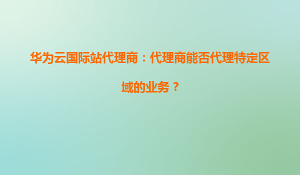 2026-01-06華為云國(guó)際站代理商:代理商能否代理特定區(qū)域的業(yè)務(wù)? 引言 隨著全球云計(jì)算市場(chǎng)的快速發(fā)展,越來越多的企業(yè)選擇通過云服務(wù)提供商(如華為云)來滿足其IT基礎(chǔ)設(shè)施需求。作為華為云國(guó)際站的代理商,了解代理...