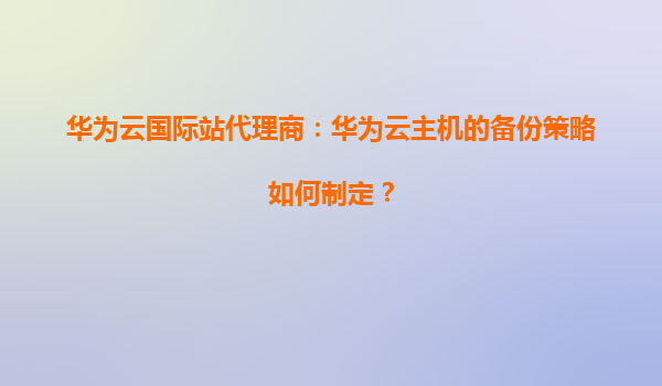 2026-01-06華為云國(guó)際站代理商:華為云主機(jī)的備份策略如何制定? 引言 在數(shù)字化時(shí)代,數(shù)據(jù)已成為企業(yè)最寶貴的資產(chǎn)之一。華為云作為全球領(lǐng)先的云服務(wù)提供商,憑借其強(qiáng)大的技術(shù)實(shí)力和豐富的行業(yè)經(jīng)驗(yàn),為企...