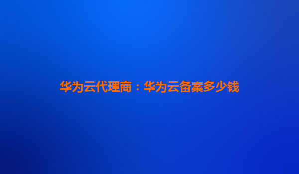 • 華為云代理商:華為云備案多少錢