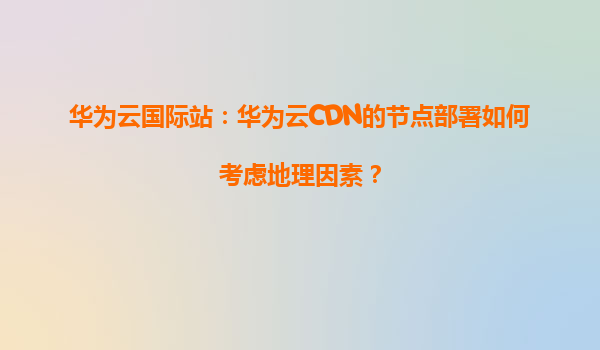 2026-01-09華為云國(guó)際站:華為云CDN的節(jié)點(diǎn)部署如何考慮地理因素? 一、引言 在數(shù)字化時(shí)代,內(nèi)容分發(fā)網(wǎng)絡(luò)(CDN)已成為提升全球用戶體驗(yàn)的關(guān)鍵技術(shù)。華為云CDN憑借其全球化的節(jié)點(diǎn)布局和智能調(diào)度能力,為企業(yè)提供了高效...