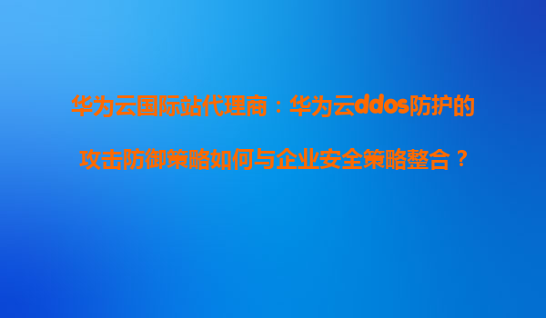 2026-01-09華為云國(guó)際站代理商:華為云DDoS防護(hù)的攻擊防御策略如何與企業(yè)安全策略整合? 一、引言 隨著數(shù)字化轉(zhuǎn)型的加速,企業(yè)面臨的網(wǎng)絡(luò)安全威脅日益嚴(yán)峻,尤其是分布式拒絕服務(wù)(DDoS)攻擊已成為企業(yè)業(yè)務(wù)連續(xù)性的...