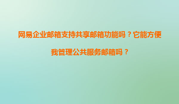 2025-11-20網(wǎng)易企業(yè)郵箱的共享郵箱功能解析 網(wǎng)易企業(yè)郵箱作為國內(nèi)領(lǐng)先的企業(yè)級郵件服務(wù)提供商,其共享郵箱功能是專為團(tuán)隊(duì)協(xié)作設(shè)計(jì)的實(shí)用工具。該功能允許企業(yè)將特定郵箱(如公共服務(wù)郵箱、客服郵箱等)開放給多名成員共同...