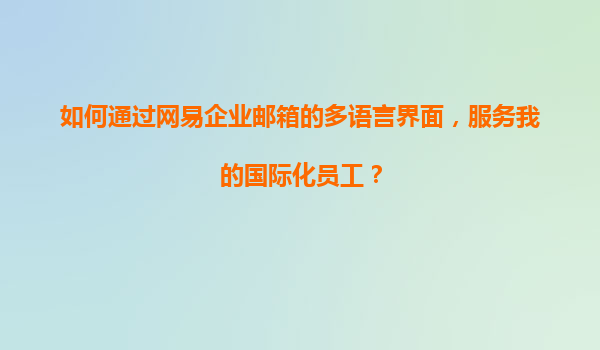 2025-11-20如何通過網(wǎng)易企業(yè)郵箱的多語言界面,服務(wù)國際化員工 一、網(wǎng)易企業(yè)郵箱的多語言支持優(yōu)勢 在全球化經(jīng)濟(jì)背景下,企業(yè)員工往往來自不同國家,使用多種語言。網(wǎng)易企業(yè)郵箱作為國內(nèi)領(lǐng)先的企業(yè)郵箱服務(wù)提供商,其多語...