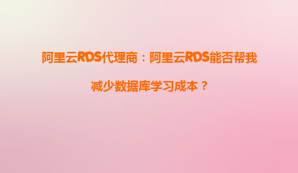 阿里云RDS代理商:阿里云RDS能否幫我減少數(shù)據(jù)庫(kù)學(xué)習(xí)成本?