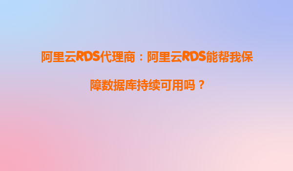 阿里云RDS代理商:阿里云RDS能幫我保障數據庫持續可用嗎?