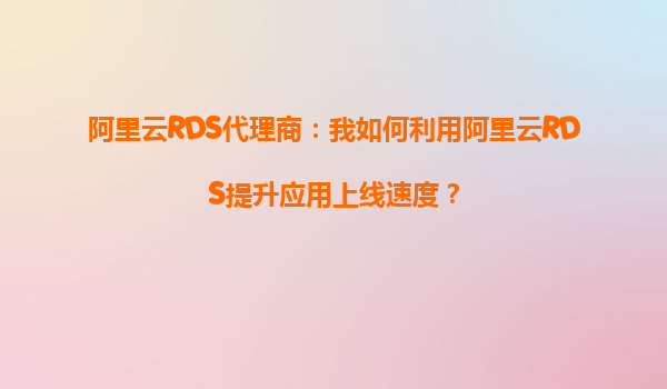 阿里云RDS代理商:我如何利用阿里云RDS提升應用上線速度?