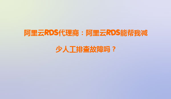阿里云RDS代理商:阿里云RDS能幫我減少人工排查故障嗎?