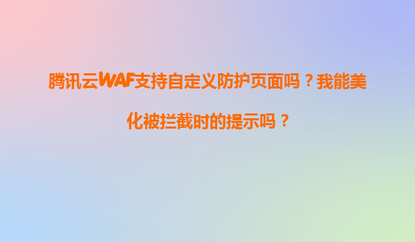 2025-11-22騰訊云WAF自定義防護(hù)頁(yè)面功能解析與美化攔截提示指南 一、騰訊云WAF是否支持自定義防護(hù)頁(yè)面? 騰訊云Web應(yīng)用防火墻(WAF)作為企業(yè)級(jí)安全防護(hù)產(chǎn)品,全面支持自定義防護(hù)頁(yè)面功能。當(dāng)用戶(hù)的請(qǐng)求被WAF規(guī)則攔...
