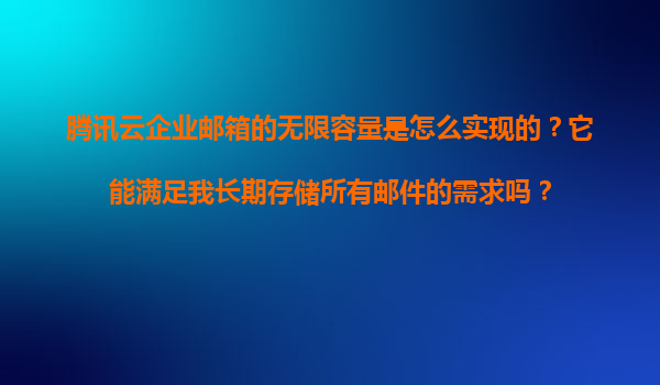 2025-11-22騰訊云企業(yè)郵箱的無限容量實現(xiàn)原理與長期存儲價值解析 一、騰訊云企業(yè)郵箱“無限容量”的技術(shù)實現(xiàn) 騰訊云企業(yè)郵箱宣稱的“無限容量”并非傳統(tǒng)意義上的物理存儲...