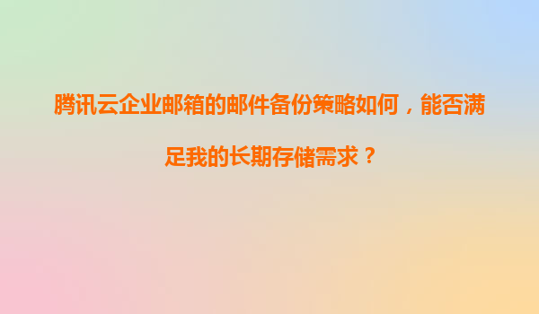4008-020-360 騰訊云企業(yè)郵箱的郵件備份策略解析:能否滿足長期存儲需求? 一、騰訊云企業(yè)郵箱的備份策略概述 騰訊云企業(yè)郵箱作為國內(nèi)領(lǐng)先的企業(yè)級郵件服務(wù),提供了一套完整...