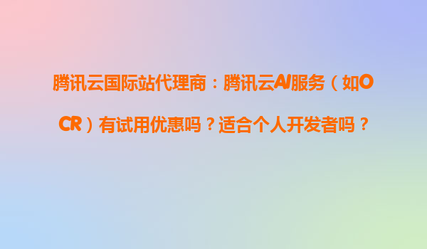 2025-04-02騰訊云AI服務的試用優(yōu)惠與個人開發(fā)者適配性解析 騰訊云AI服務的試用優(yōu)惠政策 騰訊云國際站為吸引開發(fā)者體驗其AI能力,針對OCR、語音識別、自然語言處理等服務推出靈活試用政策。新用戶注冊可領取...